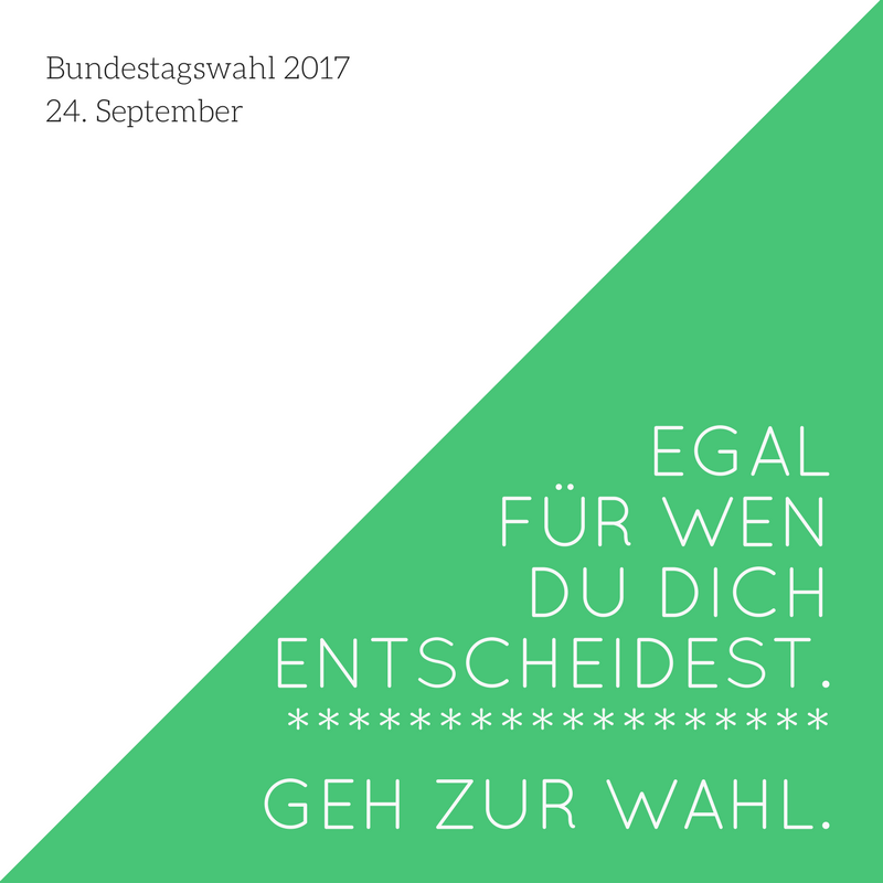 Gleichzeitig entscheide ich mich jedes Mal gegen eine Partei, deren politische Idee ich total gut finde, nur deshalb weil ich denke, dass sie sowieso nicht in den Bundestag einzieht und was soll es dann schon bringen? Um nicht zu den Verlierern zu gehören wähle ich eine Mehrheits-Partei, die ich eigentlich gar nicht will und verschwende dafür meine Wählerstimme? Ist doch irgendwie seltsam.