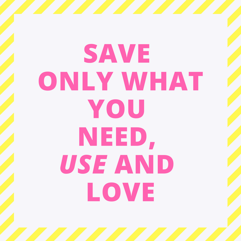 Dieser Ratschlag hat mir vor allem beim Durchstöbern meiner Kindheitserinnerungen, Reisemitbringsel und Andenken geholfen. Kistenweise türmten sich Erinnerungen auf dem Dachboden, puh! Es war unmöglich das Ganze auch nur ansatzweise Durchzuschauen ohne dafür tagelang beschäftigt zu sein. Zu viel, zu durcheinander und einfach viel zu viel!